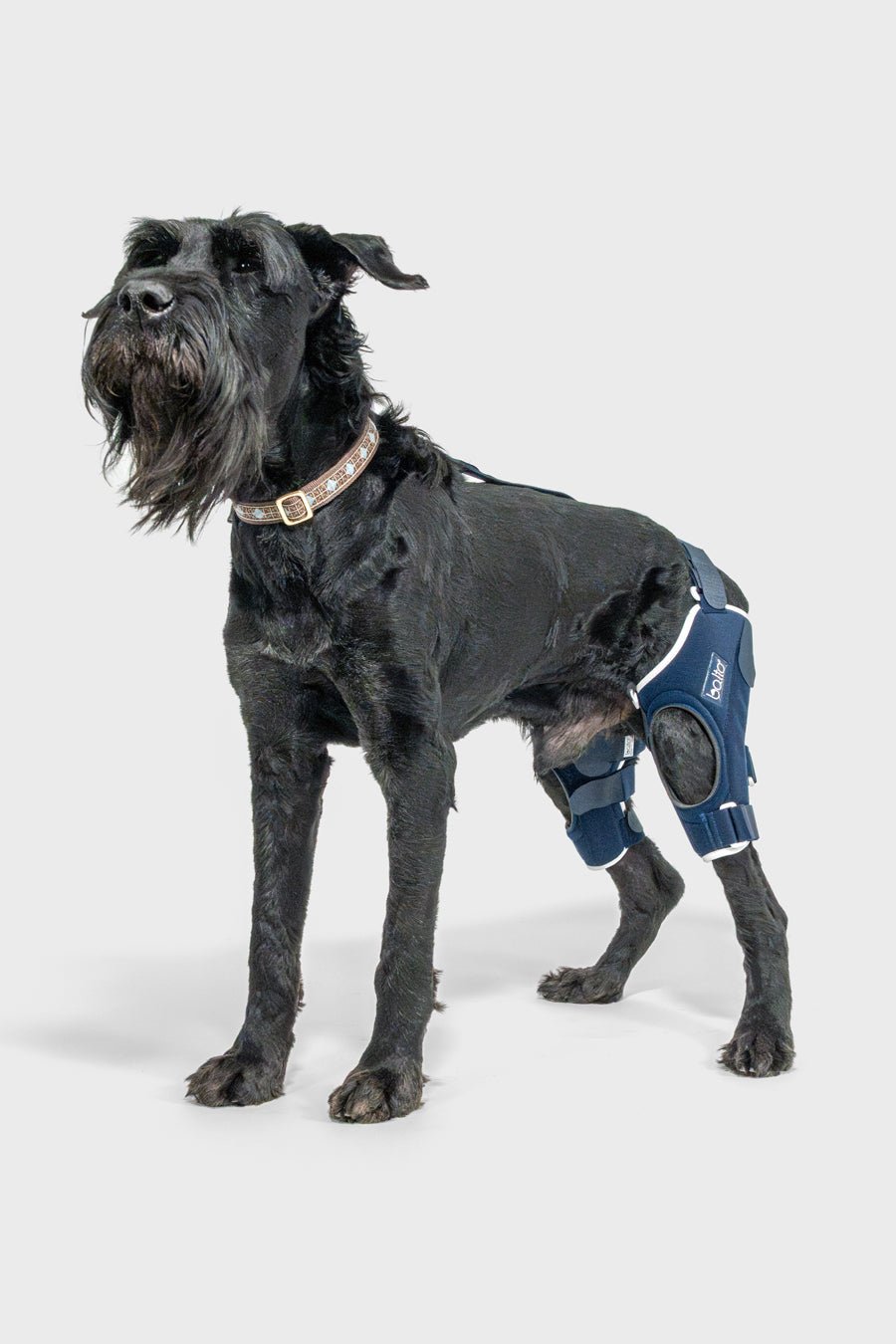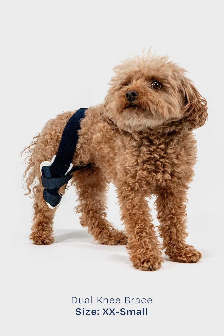 - Two durable straps: one over the hind end to anchor both knee braces together and the other to stabilize by attaching to a harness or collar